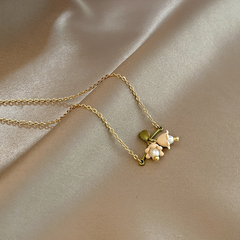 職人が一つ一つ手作りで仕立てた鈴蘭の造花と、上質な真珠が調和した、女性のためのネックレスです。